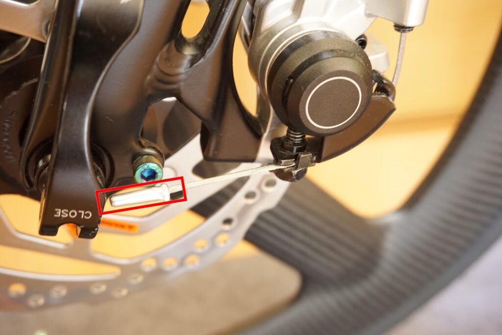 ワイヤーはブレーキレバーとの間にたるみがないよう、しっかり引っ張って固定します